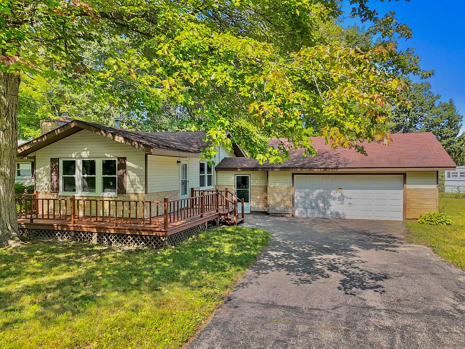 Spacious 4-bedroom home with two garages at an unbeatable price! This property offers room to spread out with a split floor plan—three bedrooms and one bath on one side, and a private bedroom and bath on the other. The large living room features a cozy fireplace, and the partial basement is ready for you to finish and customize to your needs.