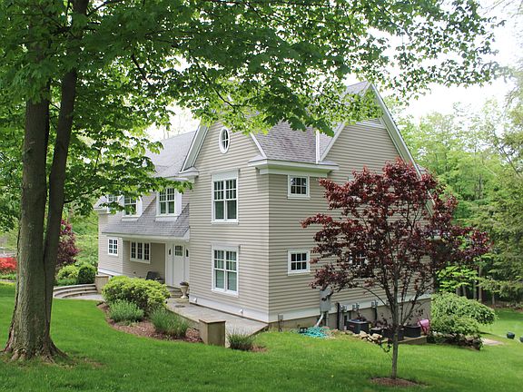 Tucked away behind stone walls on desirable West Lane, this architect-designed and completely renovated in 2001, offers plenty of space for everyone with its super versatile floor plan, wonderful architectural details as well as an abundance of natural light. A large central foyer offers easy access all points in the house, whether it be the upstairs flanked by an interior balcony, or the spacious main floor. Rooms include a Great Room with multiple windows & French doors, a cozy fireplace & an open concept design creating a wonderful area for entertaining; Dining room & Kitchen w/french doors walking out to a huge wrap-around balcony & composite deck, black granite counters, circular breakfast bar, Viking appliances, attached pantry, bar w/wine cooler.; cozy Study, Library & Home Office provide3 areas for work & study. A 1/2 Bath is conveniently located at the end of the hall. Upstairs the Master Suite includes a vaulted ceiling, updated full bath and multiple closets. Three additional Bedrooms are spacious with access to an updated hall bath. The walk-out Lower Level is perfect for relaxing with a rec room, games room, full bath, steam room and laundry room. A large mudroom is connected to the two-car garage and French doors walk out to an expansive stone patio. Huge yard + lovely landscaping. Recent renovation inc: New Roof, New Deck + New Shed. Completely Turn-Key! Minutes to the Village and a great commute to NYC. Discover Ridgefield - Connecticut's #1 small town.