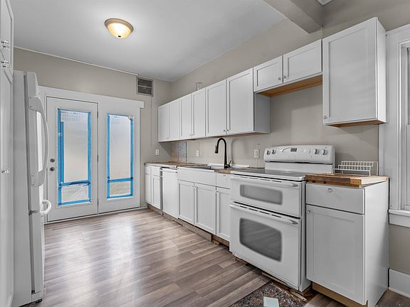 Updated and ready to go! This great home boasts character and charm throughout. The living room welcomes you in with great built-ins and large windows. The kitchen features new white cabinetry, updated countertops, and new flooring. Also on the main floor you will find two bedrooms and a full bathroom to share. The second level has two additional bedrooms and a 1/2 bath. Furnace, A/C and water heater are also new. The exterior has been freshly painted and includes a detached, two-stall garage. Don’t wait on this one! Schedule your tour today!