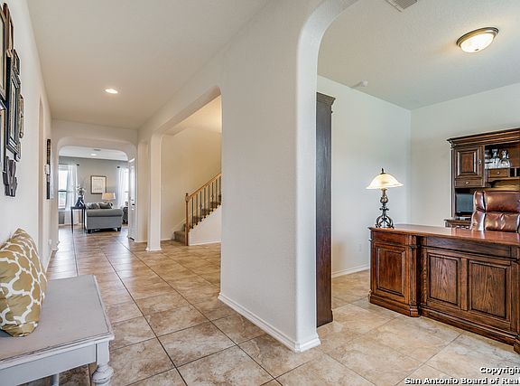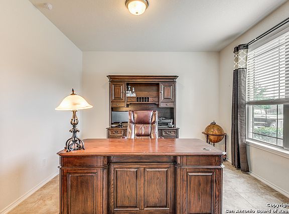 Beautiful home with space and storage galore! This 4 bedroom 2.5 bath has separate game room, office and dinning! Huge Master suite and Master Bath with amazing views of the hill country! Enjoy your evenings on the covered patio, or entertain guest in the spacious floor plan. Large walk-in pantry near butler's pantry. Grand Room, Patio and Game Room pre wired for surround sound. Both Play sets inside and out can stay in desired. Come see this beautiful home in the wonderful Herff Ranch Community!
