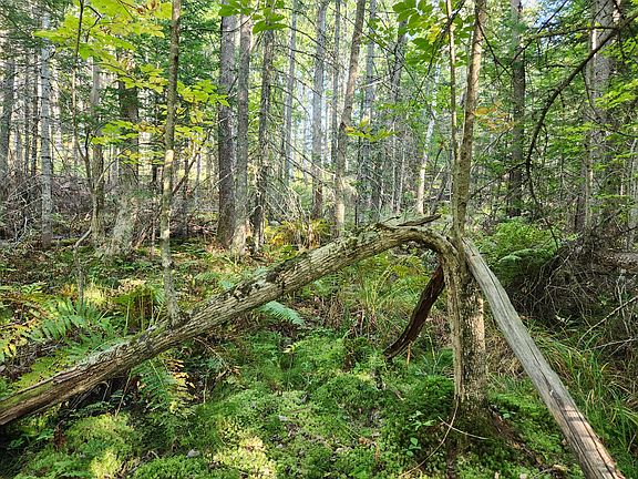 Remarkable, mature wooded lot with 1800 feet of public road frontage. This large land parcel beckons you to imagine what you might do with the space and privacy this parcel offers. Mature mixed forest hasn't been harvested in over 25 years, so large trees are very abundant. Wildlife pond and an old woods road make this extra special.