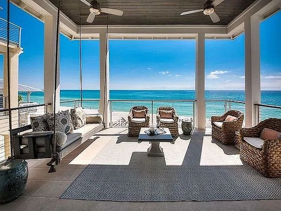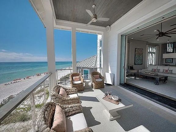 Welcome to this exquisite beachfront property boasting stunning views of the Emerald Coast and offering access to a community pool. This spacious property accommodates up to 17 guests, featuring 5 bedrooms, 4 full bathrooms, 2 half bathrooms, and 2 office spaces - an ideal setting for family gatherings, friend getaways, and remote work retreats. Situated on the East end of 30A, the property is just a short stroll from the vibrant downtown area of Rosemary Beach, with its charming open markets, boutique shops, and diverse dining options. Upon entering the home, the first floor presents two inviting bedrooms: a Master King Ensuite with a private outdoor patio and a Queen Ensuite. The first-floor deck offers breathtaking views, comfortable seating, and a fire pit, providing a perfect setting for relaxation and socializing. Moving to the second floor, you'll discover a well-appointed open kitchen and living space that opens up to a balcony with captivating Gulf views. This level also features an office space and a bunk room equipped with a 3-story Queen Bunk and a 3-story Twin Bunk, along with a full bathroom. Furthermore, the third floor offers a Full bed and crib ideal for families with young children. The King Master Ensuite on this floor boasts a charming sitting area, a private balcony, and unparalleled Gulf vistas. Treat your loved ones to a memorable vacation experience at 224 Winston Lane, where you can unwind after a day at the beach, pool, or exploring the enchanting surroundings of 30A on the 4 complimentary cruiser bikes provided. Cap off your days with a beverage of your choice and savor world-class sunsets from the comfort of your private balconies.