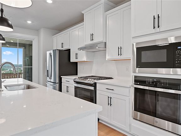 Burkett Manor Luxury Townhomes featuring Easy Life-Style Living with a Pickleball Court,Community Firepit, Walking Trails, Pavillion and Grass Cutting. Hardie® Plank and stone exterior. Entering the home at the bright and airy lower level with finished rec room; perfect for a study, home gym or a place to relax and watch the big game with friends. The main level features 9' ceilings, a large kitchen with expansive island, white cabinetry, quartz countertops and tile backsplash. Slide open your oversized rear patio door and walk right out to your extended covered outdoor space. Upstairs the 9' ceilings continue to three spacious bedrooms with ample closet space and a hall bath, plus a generous owner’s bedroom that features an included tray ceiling and an ample walk-in closet. An attached owner’s bath features an oversized dual vanity and seated shower. You’ll also love your convenient 2nd floor laundry with room for side-by-side washer and dryer. Photos of model home and not actual unit