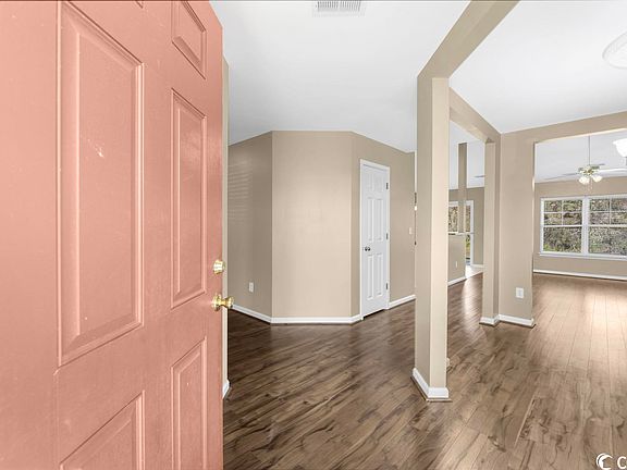 New Price Reduction! Back on the market at no fault of the sellers. New dramatic price reduction!!!. Tenants have vacated, professionally cleaned and priced to sell quickly. Don’t miss this rare opportunity to own this better than new 3 bedroom, 2 bath home with attached 2-car garage, located in the highly sought-after Berkshire Forest area of Carolina Forest. The front porch welcomes you into this bright sunny breathtaking home. When you enter this beautiful home, the foyer splits the sleeping quarters from the main living area. The owner has replaced the builder grade carpet with high end Pergo wood flooring throughout the formal dining room, family room and hallways. The chef’s kitchen features newer countertops, wood cabinets, upgraded faucet, and a designer styled tile backsplash, smooth surface cook top oven, dishwasher, pantry, breakfast bar island. The family room, kitchen/dining area has high vaulted ceilings, ceiling fan, with the large and abundant windows that invite natural light to flow through the home. The first-floor master bedroom suite has a walk-in-closet, ceiling fan, and the master bath ensuite boasts an oversized vanity/sink and a tub-shower combination. There are also two spare bedrooms and a full bath for guests and family to use. The rear of the home faces the partially fenced in, oversized large private wooded backyard. The back patio is perfect for that morning coffee, or evening glass of wine. The exterior of the home features brick masonry accents, newly updated landscaping, with irrigation system. The security system, and all appliances, including washer/dryer convey with strong offer. Berkshire Forest is an amazing resort style lake front luxury community and features many amenities including; Silver Lake, the 32 acre lake, large clubhouse, with a catering kitchen, banquet rooms, huge flat screen television for large gatherings, a library, the large resort style complex overlooks the 32-acre Silver Lake and features multiple swimming pools, zero entry kid friendly pool entry, newly completed lazy river, large amenity center, hot tub/spa, fitness center, billiards room, bocce ball courts, tennis courts, pickleball courts, basketball courts, fishing pier/dock over the lake, kayak and canoe launch ramp, horseshoe pits, gas grills, cozy gazebos, playground and lakeside walking trails. Additionally, this community offers access to The Atlantica, an oceanfront resort located in downtown Myrtle Beach. This ocean front resort has private ocean cabana, indoor heated pool, outdoor pool, showers, bathrooms, free parking, and even a lazy river. Berkshire Forest is centrally located in the award-winning Carolina Forest school district, offers convenient easy access to Coastal Carolina University, is just a short drive to the beach, restaurants, championship golf courses, multiple doctor’s offices, grocery stores, pharmacy’s, The Myrtle Beach International Airport, Hospitals, and all that makes Myrtle Beach and Conway one of the top tourist destinations, and an amazing place to live, work and play. Tenants have vacated, now vacant. Don’t miss out on this rare find, have your Realtor schedule a showing today!!! All measurements and square footage are approximate and not guaranteed. Buyer is responsible for verification.