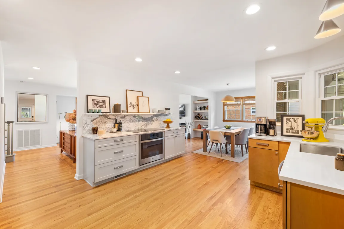 Modern updatesElectric fireplaceHuge unfinished basementFinished laundryTwo-car garageMain-level primary suiteOpen floor plan