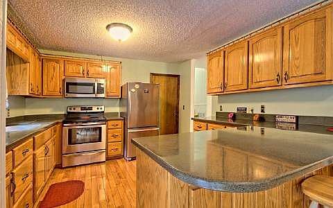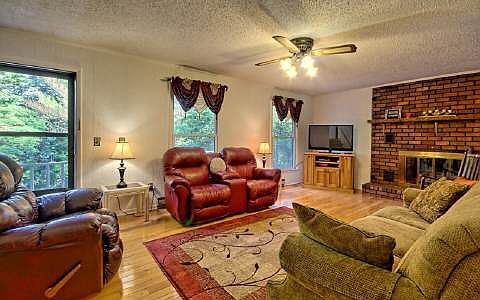 Reduced!!Brick with Vinyl Split Level Home on 1.3 Acres of Unrestricted property, with Mountain Views. Hardwood floors in Living, Dining and Kitchen with corian counters, stainless steel appliances, Brick fireplace with gas logs, central heat and air, new painted deck, down stairs with two large areas could be den/office/storage or sleeping area, also partial bath that could be finished to full. Nice area for garden, outside storage building, one owner.