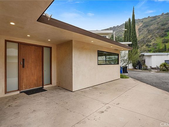 Situated on a serene cul-de-sac at the heart of Hollywood Hills, just off the famed Outpost Dr., this contemporary oasis caters to a community of writers, actors, comedians, and musicians. The tranquil ambiance sets the stage for a truly exceptional living experience. As you step into this single-story residence, light wood-style floors and expansive Fleetwood double-glazing floor-to-ceiling sliding doors welcome you, bathing the interiors in natural light. The front yard boasts a saltwater pool, creating a serene backdrop with a breathtaking view at the yard's end. The spacious living and dining area, adorned with contemporary touches, offers a versatile space for diverse vibes, perfect for entertaining guests. The gourmet kitchen, bathed in daylight, features stunning Caesar stone quartz countertops, ample cabinet space, and a pantry. Continuing through, the master bedroom, adorned with hardwood floors, captures exquisite views from every window. The floor-to-ceiling sliding doors open to a side deck with a fire pit, providing an ideal spot for morning coffee or sunset watching. The full ensuite second bedroom shares the same stunning views, conveniently located on the same side. The third bedroom, on the opposite side, serves as an ideal home office. The expansive lounge area at the front yard's end offers a perfect setting for afternoon tea, overlooking city views stretching as far as downtown LA. The home features an impressive frontage and a large 2-car garage. Additional amenities include a washer and dryer, along with ample storage space with built-ins Notably, the house is equipped with solar panels, virtually eliminating energy bills. This charismatic residence invites exploration to truly appreciate its unique charm. Act quickly, as it's attractively priced for a swift sale! Property Default, Must Sell!