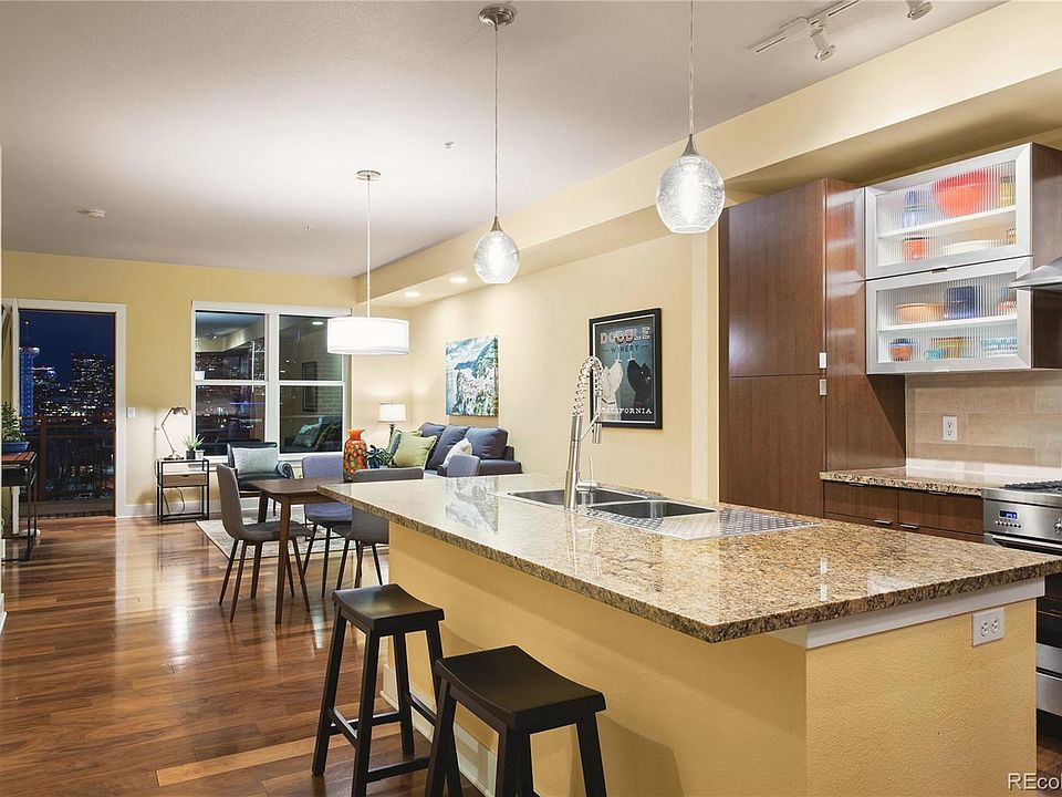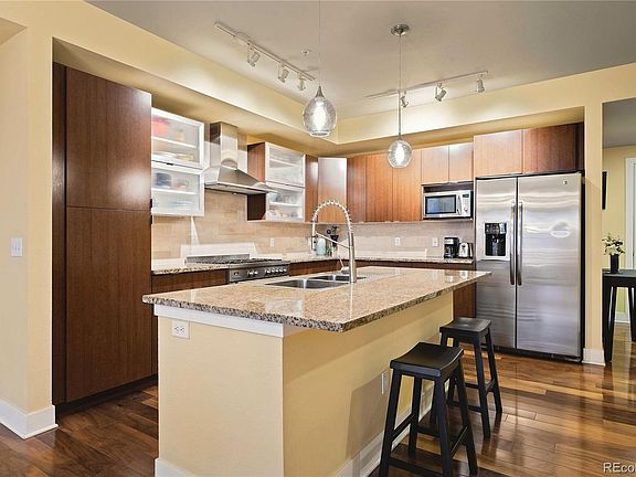 Beautiful two bedroom, two bath condo at RiverClay in Jefferson Park. Incredible panoramic views of downtown from the large covered patio with a natural gas grill hookup. This gorgeous condo has top of the line finishes including beautiful hardwood floors, a large gourmet kitchen with island, a spacious master bedroom with en-suite 5 piece bath and a walk-in closet. All in an elegant, secure building. Riverclay was LEED-certified Silver for energy efficiency when it was built. Close to LoHi, Highlands, Downtown, Mile High Stadium, I25 access, restaurants, bars, shopping, and Jefferson Park is right across the street.