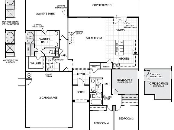 This Milan home is 1,890 square feet, single story, 4 bedrooms and 2 bathrooms.. This quality-crafted home features a Tuscan styled exterior design with inviting carriage lights, accented stone veneer, decorative exterior shutters, charming front porches, a covered patio and more. On the interior of the home, you will find standard features such as spacious 9-foot ceilings, tile flooring at the entry, dining, kitchen, baths and laundry room, walk-in closets at the owner's suite, Whirlpool® stainless steel gas range, microhood, and dishwasher, and a brushed nickel trim and hardware package. Call the sales office to find out more about this plan's availabilities and ways you are able to customize it. This home is located at Quail Run in Delano. Quail Run is known for its charming, small-town atmosphere, while still boasting the fact that it is close to Highway 99 for a convenient commute to Bakersfield.