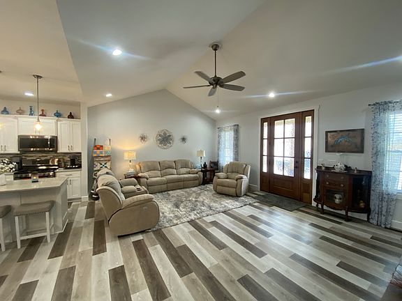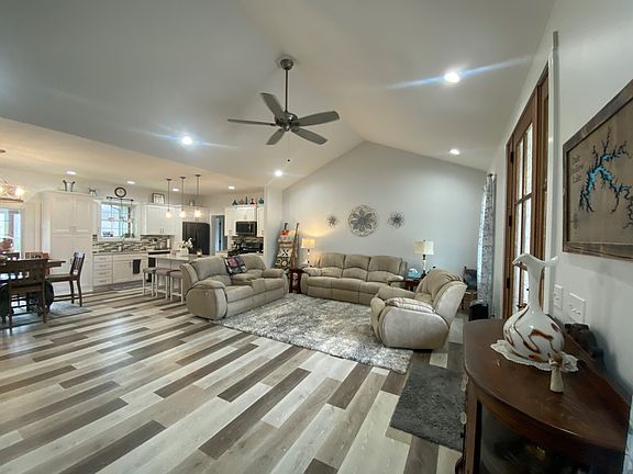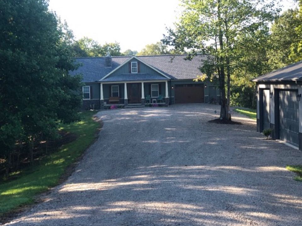 3 Bedroom 2 Bath Ranch Style Home nestled on 3.65 acres by survey located in Cumberland County, Kentucky within a 5 minute drive to Dale Hollow Lake State Park. This beautifully designed home boasts a stunning wooden front door with beautiful designed glass; the living room offers a vaulted ceiling and a custom stone fireplace; the kitchen equipped with quartz kitchen counter tops, kitchen island, soft close kitchen cabinets and drawers, and vista views of the back lawn; dinning room with French Doors leading out to the screen in porch; 2 guest bedrooms-featuring custom white trim with walk in closets & 1 guest bathroom; a SUPER SIZED Master Bedroom with a door leading to the screen in porch & large master bath featuring a custom walk in shower & soaker tub; user friendly laundry room and 1 car attached garage. The home is built with energy efficient windows, luxury vinyl tile through out, 2x6 walls, & 50 year dimensional shingles. A 26x36 insulated detached garage with concrete floor and electric featuring one 16 wide x 10 ft tall door and one 10x10 garage door and an additional 10x10 storage building.
