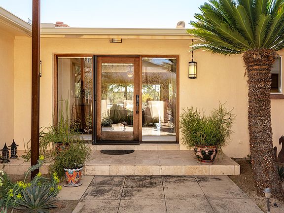 Spacious 2,376 SqFt, 3 BD, 2.5 BA ranch style home located on a private 1.07 acre lot in the highly sought after Catalina Foothills, within close proximity to shopping, entertainment, recreation, and the U of A. Completely remodeled and upgraded throughout with owned solar, this modern designed home is a cut above other homes of its era, while still retaining the charm of the old foothills. The open floor plan features stunning window walls throughout that capture the spectacular mountain views, beautiful backyard space, and vast natural desert landscape, making this home truly something special. As you enter you will be captivated by the spacious living room that features a stunning stacked sandstone fireplace and large window walls that allow for tons of natural light and picturesque views. If you like to cook, you will fall in love with the designer kitchen featuring gorgeous custom cherry/maple cabinetry, granite counters, and top of the line stainless steel appliances. The open dining area is perfect for entertaining, as it is conveniently located off of the kitchen and centered between the living room and family room, with a large window wall that embraces the beauty of the outdoors and spectacular sunsets.The family room is perfect for sitting back and relaxing, as it features incredible views, and a built-in cherry and maple wood custom entertainment center that accommodates a large flat screen TV. The large master bedroom features a fireplace, cedar closet, and en-suite bath that has a walk in shower, elegant wood vanities with granite countertops, and walk in closet. An added bonus to the master is the sizable private walled covered patio that provides a safe/secure enclosure for pets, with fruit bearing trees, sauna, and views of the serene pool and desert, with access to the pool area and backyard. Additional bedrooms are spacious and feature stained concrete flooring and ample closet space. The hall bath features a travertine shower/tub and pedestal sink. Laundry room is located in the garage and has a utility sink, storage, and bathroom accommodations. 2 car garage features a large work bench and a 200 amp breaker, including a 50A 220V for an electric vehicle. With access from the family room, living room, and master bedroom, the backyard is your personal oasis in the desert, featuring a lagoon style pool, hot tub, gazebo, and native plants that blossom throughout the year, and fruit bearing trees that are delightfully fragrant when in bloom. Whether you are entertaining or relaxing, this is Arizona living at its finest. So if you are looking for something special, this home truly is a must see.