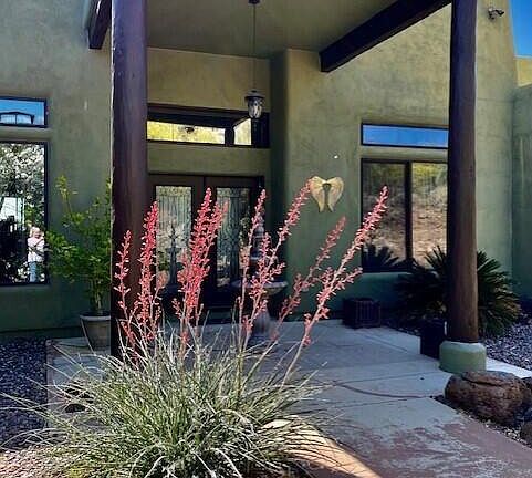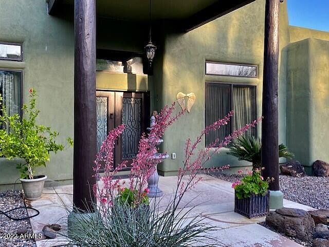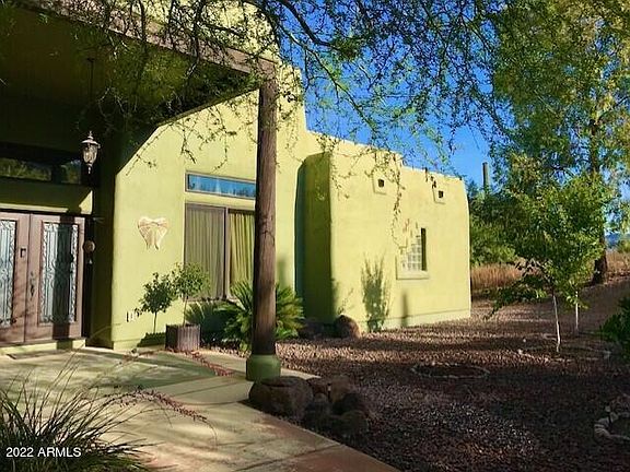 Enjoy the truly breathtaking views from this stunning 2556 sqft 4 bedroom home w split master floorplan. The home was renovated 2014 with high end tasteful appointments thru out. The front entry portico w/columns along w/the custom double entry doors & oversized front picture windows; all with transom windows, create a dramatic entry to this architecturally superior home. Detached 196 sqft structure w/ high ceilings, great natural light & views, currently used as studio but is overall a great flex space for your choice of use. Upon entry to the main home you'll find the formal dining rm to your left & then proceed ahead to the OPEN Great Room w/its 14ft ceilings, cozy wood burning fireplace, large picture windows, & french doors across the back leading out to the full length rear covered patio opens to the beautifully designed pool w/water feature/ fountain & also has swim jets which provide strong currents when on, for an effective aquatic exercise system. The surrounding backyard, which is fully fenced offers lush mature landscaping and the best views in the area for "living life like you're on vacation every day!!!" At the heart of the home you will find the AMAZING kitchen with huge Bay Window for lots of natural light, walk-in pantry, with frosted glass door, Gourmet Chef's island and breakfast bar, generous slab granite counter tops, custom mosaic tile backsplash, NEW Induction Cooktop, trash compactor, built-in wall oven and microwave, upgraded cabinetry and entry to the patio and BACKYARD SANCTUARY for EASY Entertaining. The Master bedroom ensuite with double door entry & it's bay window sitting area, offers a Jacuzzi Tub with separate travertine tile shower, dual granite vanities, beautiful cabinetry, generous storage for linens, private toilet room, and large walk-in closet. Second bedroom closer to the front entry has walk-in closet with built-in cabinets, large picture window. double doors at entry, and works as a great office as well! The other bedrooms (#3 and #4) are on the other side of the home with either dual closets or walk-in. Inside laundry room, with washer and dryer included leads out to the huge 3 car garage with it's built-in cabinets and electric openers for all three. More Recent Updates/ Repairs Replacements A/C Units - 1 replaced 2021 4 Ton 1 replaced 2022 3 Ton Pool Equipment all replaced 2019 or after Induction cooktop replaced and barely used Garbage disposal replaced less than 3 years ago Pergola by pool replaced 2022 All new irrigation system front and back and on timers New paint to entire exterior of home 12/2022 with 5 yr contractor warranty Ring security system Well pump replaced 2017 Retaining wall professionally built at backyard pergola vicinity Extras and Notable Home Features List * Tankless Water Heater * Water Softener * Private Well * Paver Driveway with extra parking * Extensive Solar with 3 Invertors/ On Grid/Fully Paid Off and has enabled mere $12/mth electric bills for seller * Trash Compactor *Induction Cooktop * Walk-in Pantry with Frosted Glass Door *Custom Mosaic Tile Backsplash * Backyard Greenhouse *Lush Mature Landscaping * Fruit Trees; Orange, Meyer Lemon, Persian Limes, Figs,, and Guava *Pebble-Tech pool with water feature *Pool swim jets, when on, enables continuous swimming for fitness or therapy *Wood Burning Fireplace in Great Room *Jetted Master Tub *Fully Fenced Backyard * Included Washer and Dryer * 3-Tier Front Entry Fountain * Walk-in Closets in 3 of 4 bedrooms and Dual in closets in the other * Generous Storage Space * DETACHED 196 Sq Ft Structure/Studio * Close to Tonto Nat'l Forest *AMAZING SUNSETS (see photos) * AMAZING VIEWS (see photos) * Privacy * Tranquility * Home is on Upper Portion of 2.3 acre lot * Existing Tack Room & More Useable Space On Lower Portion of 2.3 Acre Lot