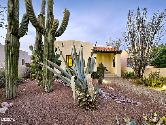 Discover the charm and character of this beautiful Sam Hughes mud adobe home, originally built in 1936 and lovingly cared for with updates in 2019. With a roof replaced and recoated in May 2024, this home also features a newer HVAC system, an updated kitchen, and a modernized bathroom. The original white oak hardwood floors, niche, and coved ceilings are just a few of the elements that add to its unique appeal.In addition to the main house, there is a fantastic studio apartment complete with a kitchenette and a half bath. The large backyard boasts mature desert landscaping, offering a private oasis enclosed by walls, with plenty of off-street parking available.Located within walking distance to Himmel Park, Flora's Market, and the University of Arizona, this home combines convenience with a cozy, historical ambiance. Don't miss the opportunity to own this charming piece of history in the heart of the Sam Hughes neighborhood!