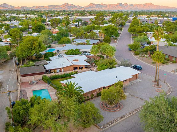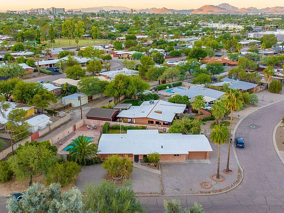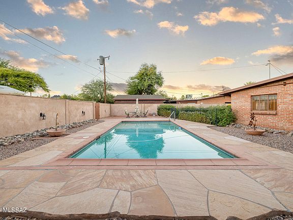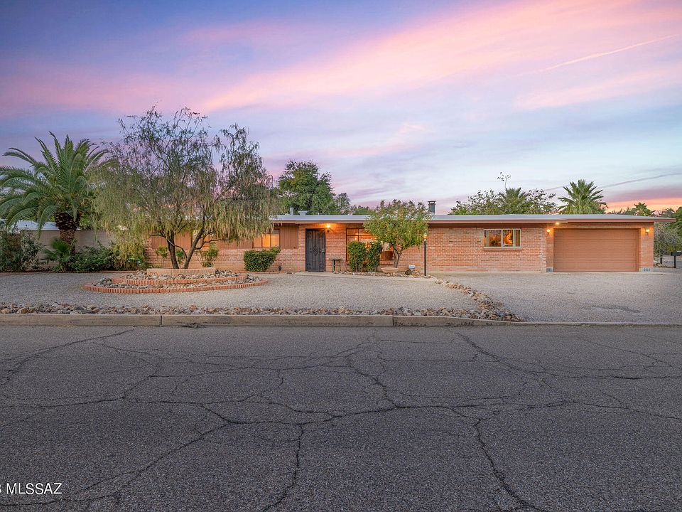 Amazing estate sale opportunity for Mid Century Modern, 4 bed/2 full bath, 1,935 SqFt split floorplan double red brick ranch with attached 433 SqFt 2 car garage and refreshing pool on massive .29 acre premium corner R1 double lot, located in the heart of desirable Shaheen Estates neighborhood in thriving Central Tucson. Enjoy the best of both worlds, the character and charm of a 1961 masonry built home (they don't build them like this anymore!) with modern updated amenities. E/W orientation, no HOA, space for RV parking, Catalina mountain views, soaring palm trees, single story, no stairs/no steps, on & off street parking and low care landscaped front yard. Second owners for 54 years, pride of ownership shines! Featuring original half-moon sand swirl textured painted ceilings, no popcorn, vintage casement windows w/working hand cranks, 16" tile flooring, original internal wood doors, wired for alarm, ceiling fans, gas HVAC (7 years old), Honeywell digital thermostat, gas water heater, original genuine wood paneling formal dining area w/energy efficient double pane slider out to private backyard, large living room, freshly stained original wood kitchen cabinets, ample counter space, bar island seating, garden window to private backyard, exhaust fan, internal laundry room with storage, white washer & dryer included and door out to backyard. Split floor plan would make an excellent AirBnb or perfect solution for multigenerational living. Massive 4th bedroom off from the attached garage with separate entrances through laundry room and garage out to backyard, featuring separate mini-split HVAC and wood burning stove. Enjoy tranquil Tucson nights from under your 325 SqFt extended covered patio w/authentic saltillo flooring, refreshing pool (3' to 9' deep) w/pool fence, sand pool filter, fresh green grass, irrigation, raised flower beds, pavers, flagstone sitting area, gated alley access surrounded by large masonry stucco privacy walls. Current termite warranty with Arizona Pest Control.