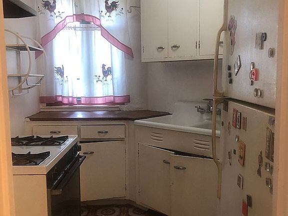Entry foyer has a closet and open layout to dining room table and large living room area to window views of treetops and gardens. Windowed kitchen has double farmers sink, needs new appliances and cabinet touch up -But its easy!