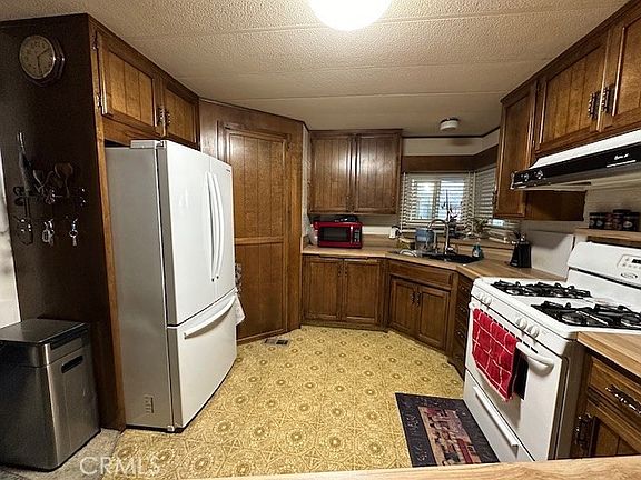 Home sweet home! Lovely 2 bedroom, 2 bath mobile home with carport. (Could possibly create a 3rd bedroom.) Beautiful kitchen with breakfast bar, user-friendly pull out drawers, gas stove, pantry, built in display shelf and opens up to the comfortable family room. Roomy primary bedroom with built-ins and spacious primary bathroom boasts dual vanities, easy access garden tub and linen cabinet. Secondary bedroom has direct access to the auxiliary bathroom with shower and built-in. Handy laundry room with cabinets. Entertain in the covered deck area or side yard with cove. Bonus project area and shed. Sierra Mobile Home Park is a 55+ gated community with a swimming pool, saunas, common areas, clubhouse access & events and more. What are you waiting for?! This is the one!