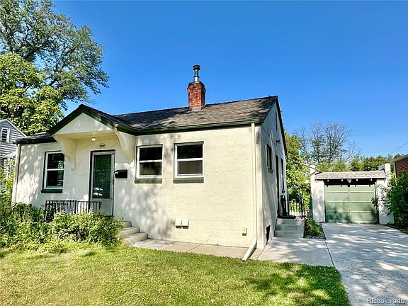 Charming opportunity in coveted Edgewater area - just a few blocks from Sloan's Lake and the popular Edgewater Public Market. Large, lush backyard with mature trees and deck. New roof in July 2023. Detached garage plus extra off-street parking. Near the Broncos Stadium, Casa Bonita, grocery stores, and more. Easy access to I-70 and public transit. 10 minutes to Downtown Denver.