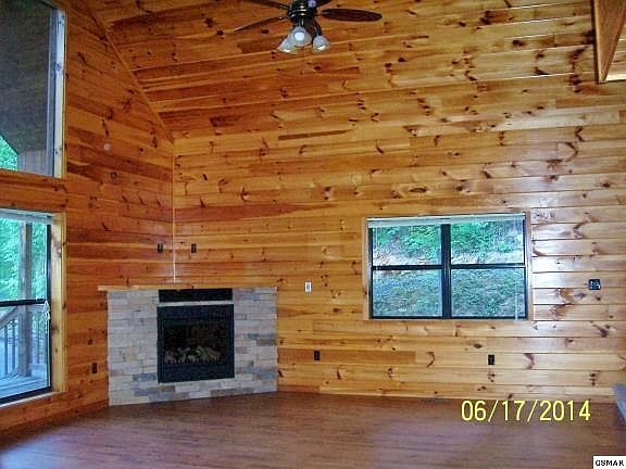 This authentic log cabin has an over sized wrap around deck perfect for grilling, taking a private dip in the hot tub or just relaxing and enjoying the peace and quiet. It has ample parking on a paved level parking area. Lots of privacy on this spacious almost 1 acre lot. The great room features a beautiful stacked stone fireplace to cozy up to on those cool mountain evenings. The main floor has 2 large bedrooms and 1 full bath. Upstairs is the master suite complete with a whirlpool bath to unwind in at the end of a long day. This cabin can be anything you want it to be from a permanent residence to an overnight rental cabin. Conveniently located just moments from Gatlinburg or minutes from Pigeon Forge and Sevierville. Priced to sell it won't last long. Brokered And Advertised By: Dream Catcher Realty Listing Agent: SANDRA BROWN