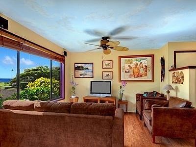 Successful well appointed ocean view Transient Vacation Rental (TVR) with AC being sold completely furnished including the VRBO marketing with existing reservations and future bookings. VRBO 390784. Next to Poipu Beach Park! Dr. Travel and the travel channels pick for' America's Best Beaches' Poipu Beach Park / Brenneckes offers body surfing, surfing, snorkeling, sandy beaches, life-guarded kids pond, playground, grassy park with bathrooms, pavilion, picnic tables, showers etc only 100 meters away! Oh yeah... Brennecke's Restaurant, deli/market with SHAVE ICE (nom nom nom) is right there too! This unit has been recently remodeled and offers high end beds and bedding, furnishings, artwork & bamboo flooring. 2 bedrooms and 1 bath, well equipped kitchen, flat panel HDTV, DVD player, ice maker and filtered water, dishwasher, ceiling fans internet, dimmable lighting and air conditioning.. This unit has great airflow and comfortable bedrooms. The master has a King and the 2nd bedroom offers 2 extra long twins that can be made up into a king if you prefer. You will hear the waves and feel the trade winds as you look out to tropical blue water from this unit. Hale Kahanalu is a quite 8 unit complex that offers a BBQ area, laundry, and covered assigned parking. Hale Kahanalu means ' his house by the surf'.Financial and Rental History available upon request. Active Vacation Rental, showings subject to availability. Check with your Realtor for viewing availability.