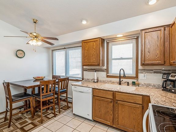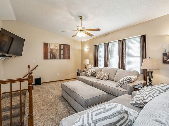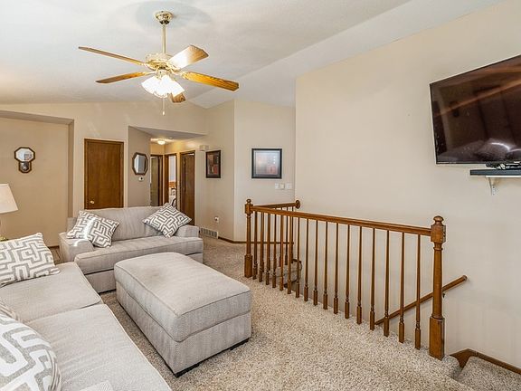 Welcome home to this 3 Bedroom, 2 Bath Walk Out Ranch w/ approx 1800 square feet of total finish. Features 6 ft vinyl fence backing to timber, new roof in 2022, 16x12 ft shed w/ electricity on cul-de-sac. Vaulted main floor living area w/ tiled entry, updated kitchen includes dining area, newer cabinets, tile backsplash, appliances, undermount sink & countertops. 3 bedrooms plus completely updated main floor bath with new vanity, tub, fixtures & tile. Ceiling fans, recessed lighting and tile floors throughout plus floor heaters in the kitchen and master bedroom. Lower level finish includes non-conforming 4th bedroom, large 3/4 bath, living area w/ surround sound & built-in's & tile floors, laundry area & storage area w/ shelving included. Walk-out to 12x10 patio area plus newer 845 sf 2 tier deck, 30x15 ft above ground pool, gazebo, covered patio area, yard with timber view. All appliances plus washer & dryer, solar cover, vacuum & pool equipment included. Walking distance to Easter Lake & Ewing Park with fishing, biking & walking trails. Mid-American 2 year Utility Ave is $134/mo. Don't let this ONE get AWAY!