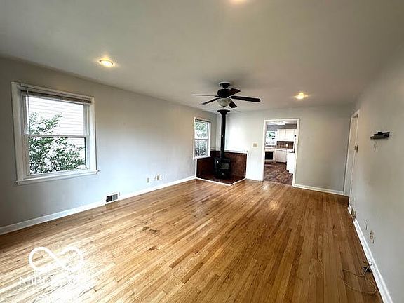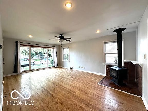 Charming home in a conveninent location, close to schools and shopping. 2 bedrooms, 1 bath, kitchen with breakfast nook and all appliances. A large living room with freestanding woodstove. The finished basement offers daylight windows, family room with gas log fireplace and all the theater equipment for movie night! (retractable screen, projector, speakers) Additional amenities include a playroom, private office, bonus room, and laundry room. Fenced backyard and 16x22 / 1 car detached garage with door opener. Priced to sale! Home sold as -is.