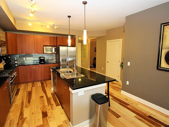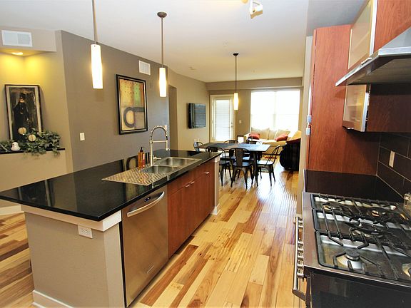 Beautiful 2 bedroom Condo in Riverclay in the Highlands! Spacious, open floor plan, neutral paint, and an abundance of natural light give this home a warm & welcoming feel upon entrance! Gorgeous, upgraded hardwood floors! Fabulous modern kitchen with upgraded, high end stainless steel appliances and an island with a sink offering additional seating! Master bedroom with private, updated bathroom and walk-in closet, an additional bedroom, plus an additional updated full bathroom. This building is one of Denver's few LEED certified buildings. Includes paid for solar panels which cover up to 50% of electric costs! Expanded large deck perfect for entertaining and enjoying the magnificent City views! Heated garage with an assigned parking space, a personal bike rack, and a bike maintenance room. Near parks, Downtown, I-25 and much more! Schedule your showing today!!
