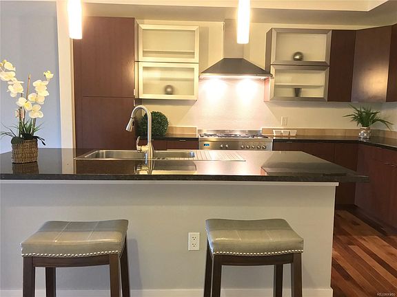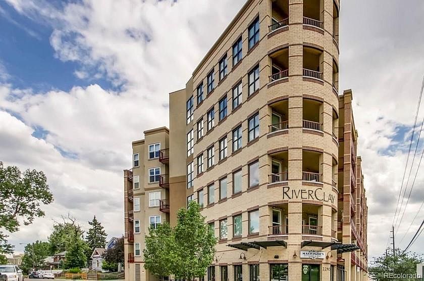 River Clay large condo in Denver's first LEED Certified Silver building. Walk to Mile High, Elitches, Briar Common Brewery & all of the HOT Highland's restaurants and bars! Great location. Features huge covered balcony of 26x8 ft overlooking Jefferson Park. Sunny, open floor plan. Spacious kitchen with granite counters and large island with seating, modern flat-surface cabinetry plus stainless appliances! Sunny and Bright master suite with walk-in-closet and front loader Electrolux washer/dryer that are included. Master bath with dual sink raised vanity, modern lighting, and over-sized tub/shower! 2nd bedroom can be office or study features french doors. Building has solar! Unit comes with 1 storage unit & 1 garage space. River Clay boasts secured entry, elevator access and a workout facility. HOT location at unbeatable price!