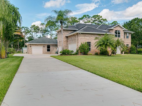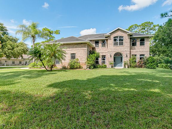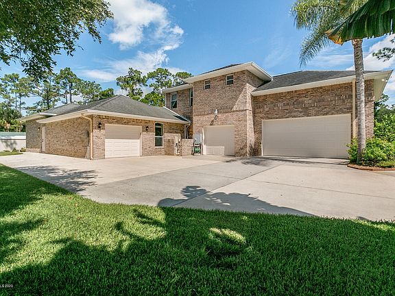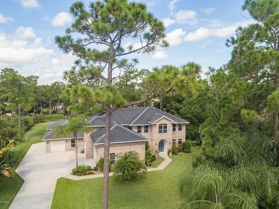 Call/Text Joel Ludlow @ 321-288-9537 to make your appointments. The sprawling grounds this stately brick manor sits on are expansive with mature pines and a variety of tropical palms. Ample parking is evident when arriving at the property with a side driveway in addition to the 4 car garage. Through the grand entrance you will step into tranquility and be immersed with the elegant finishes this estate has to offer. To the left of the foyer is the distinguished formal living room with the private owners study to the right. Beautiful wood look tile flows from the foyer to the family room. This family space is nothing short of breathtaking with it's views of the grounds, pool, and tastefully updated kitchen. This chef's space is nothing short of impressive with it's combination of quartz/corian countertops, solid wood cherry cabinets, matching stainless steel appliances, eye pleasing back-splash tile, and enormous walk-in pantry. In addition to the already mentioned areas the main floor of the home includes two bedrooms, two full baths, a half bath, bonus room, and a theater that was poured with solid concrete to double as a "hurricane safe" room. Up the double staircase you will find a third living space in the form of an over-sized loft. The owner's quarters gives unlimited furniture arrangement possibilities with it's grandeur size. The owner's en-suite bath is beautiful with his and hers vanities plus make-up station, all with exotic granite tops, shower with shower heads on each end with granite waterfall in the middle, walk-in closet with custom cabinetry, and private water closet just to name a few. Also on the second floor are two bedrooms connected by an updated Jack and Jill bath, and a second master bedroom along with the spacious laundry room. The additional master bedroom also has its own private bath with double vanities, stand up shower with white subway tile and glass tile accents, and his and hers closets. Head back down to the pool area you will find yourself smiling under the extensive lanai that overlooks the screened pool. In this space you have an outdoor shower to enjoy along with easy access to the pool bathroom and kitchen. This property has many features that even the most discriminating buyer can appreciate and storage that you will not believe. I implore you to take the time to make your appointment today, you will not be disappointed.