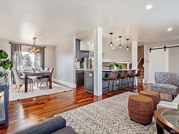 Here is the home you have been looking for extensively updated, located at the top of a cul-de-sac, in a desirable community in Lakewood with easy access to C-470 and I-70. The open, free flowing floor plan creates an atmosphere which is ideal for entertaining as well as comfortable everyday living. Gleaming wide plank wood flooring on main and lower level, dramatic 7 baseboards, custom light fixtures, 6 panel doors, wrought iron balusters, canned lighting. Cooking will be a pleasure in the new Gourmet Dream Kitchen which features gorgeous quartz countertops + 2 islands, breakfast bar, an abundance of beautiful cabinetry with crown molding, farmhouse sink, stainless steel appliances, including a 5-burner gas cooktop with pot filler and custom hood. Pantry with barn door. Comfortable Family Room with beadboard wainscoting, sconces and an attractive brick surrounded electric fireplace. French doors lead to the rear patio. Convenient mudroom with cabinet, cubbies & hooks. Adjacent to updated bath. Lovely Master Suite features a stylish wood accent wall, 2 closets and a remodeled bath. 3 additional upstairs bedrooms are nicely served by a full bath with granite countertop, 2 undermount sinks and tile flooring. Ceiling fan light fixtures in all bedrooms. New A/C (2020), fresh interior paint, new fence. Extensive future living space in the garden level basement which is ready to be finished. Natural light streams in the 5 windows. Great outdoor living space - large patio area, partially covered, mature trees, fully fenced and mountain views. Don't miss this one!