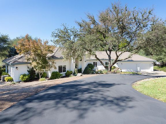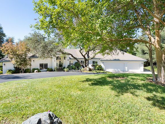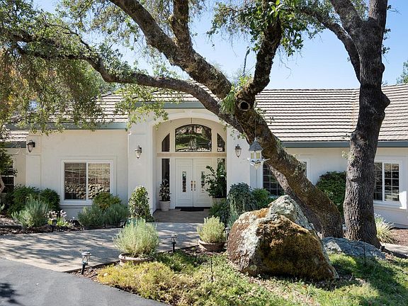Prestigious Greenstone Gated Community presents this gorgeous 2,613sf single story home lake views set on 3.03 acres Lovely lush landscaping greets you as you make your way up to the stunning front double door entry that leads you to the spacious floor plan showcasing vaulted ceilings, natural light flooding in through the large picture windows, recessed lighting, crown molding & cozy wood burning fireplace. Light & bright kitchen features granite countertops, island sink, built in desk & pantry closet. Peaceful primary suite has outside patio access, dual sinks, jetted tubs, walk in closet & stall shower multiple shower heads. Take advantage of having a junior suite and a home office room. Step outside in the beautiful backyard that has a spacious patio overlooking the lawn area, lush landscaping and the lake. Enjoy having a large pasture area overlooking the lake perfect for your horses and plenty of room to build a barn. Close to Hwy 50 and other conveniences.