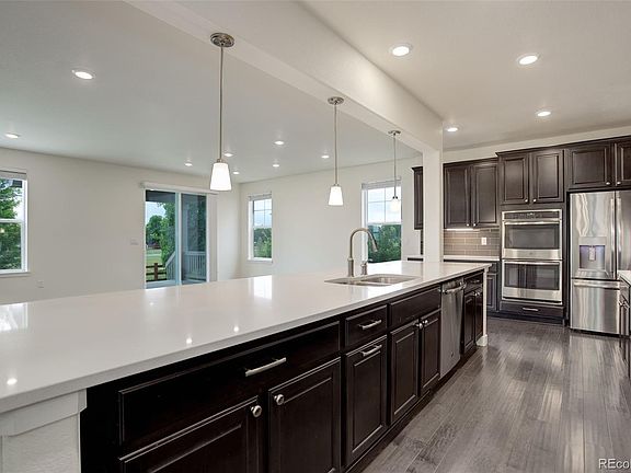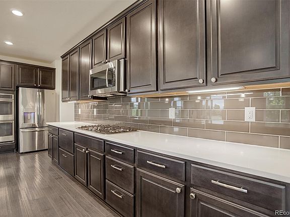 Welcome home to modern living in this 6 bed, 5 bathroom Next Gen house. This super home shows like a brand new build yet has maturing landscaping in the front and back yard. Enjoy time on the covered deck with the large greenbelt backing the property. Upon entry, you are greeted by an expansive open floor plan which blends new design with smart home technology. Gourmet kitchen with gas cooktop, 14 foot island, large pantry and double ovens. Upstairs in the main house you'll find a generous loft, 4 bedrooms, 2 bathrooms and the primary suite with a 5-piece bath. Mountain views from the primary suite! The home is equipped with abundant smart features including temperature control, lighting, security, and fast fiber internet. Dual zone HVAC, extra built-in shelving in 2-car garage, and all appliances included. Roof replaced just last fall with Class 3 Hail-Resistant shingles. New exterior paint this year and wood fencing was just restained. Radon mitigation system installed and built-in radon detection system for peace of mind. Home is still under builder warranty for any structural defects for another 4 years!