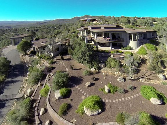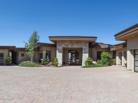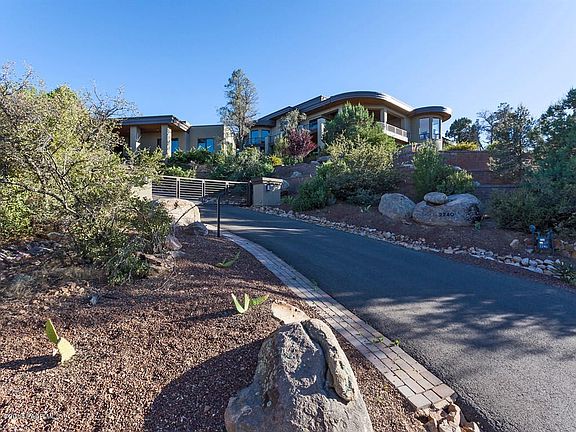 Stunning custom estate with magnificent City and Northern Arizona views located on a 3 acre lot with tons of privacy. This spectacular estate features the main house with over 5,600 sq ft of livable space, with 4 bedroom, 4 Baths, 2 Powder Rooms, formal dining room, game room, plus 5 car and 2 car attached garages. The guest house features 1 bedroom 1 bath Guest House with additional 2 car attached garage. There is also a RV Garage. Upon entering through the over sized custom door you are immediately greeted by the spectacular formal living and dining areas with 15 ft ceilings and a wet bar. The gourmet kitchen features custom cabinets and wood flooring, center island, top-of-the-line stainless steel appliances including Viking refrigerator, 2 Viking dishwashers,