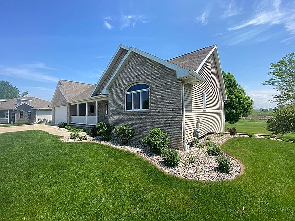 This 3500sqft custom house built by Dick DeValk Builders in 2001 is located in Kaukauna on Eagle Links G.C. Home features open concept living, 4 bedrooms, 3 ½ baths and 2 fireplaces. 3 car garage with drains, hot and cold water hook up, plus additional work shop garage area with steps that go to the lower level. Mature landscaping with curbing and terracing blocks reset last summer. Refrigerator, Washer & Dryer, Grill and Over stove Microwave/ Convection oven included. UPPER LEVEL 2000sqft -split 3 bedroom design with French doors that separate the spaces. New carpet in the 2 bedrooms and stairs plus new flooring in the bathroom. -unique ceramic tile pattern and hard wood floors. -master ensuite has tray ceiling with recessed lighting, 3 windows and hardwood flooring. The master bath has duel vanity, stand up shower and corner whirlpool tub with ceramic tiling. The large walk in closet is off this bath with closet works design. -kitchen was updated in 2018 with cabinets painted to an antique white and granite countertops and sink. -great room has high vaulted ceiling with hardwood flooring and offer lots of natural lighting. -bedroom 2&3 are nice sized with closets. Bedroom 2 has a vaulted ceiling. - first floor laundry with half bath -large maintenance free deck with Schmidt Boat Dock decking. Deck also features natural gas Weber Grill(no need for propane tanks) LOWER LEVEL 1500sqft -large family room with fireplace and room for tv above. -wet bar with custom made bar table and bar stools. -dedicated office space -bonus area that could easily incorporate another bedroom. -basement utility room housing mechanicals with an abundance of additional storage. This area is accessible by garage steps or 48” steel door from outside. -smaller storage are off the bar plus under stairs storage. -large bedroom with walk in closet. -full bathroom. -2 putting holes in basement floor. -slider to cement patio.