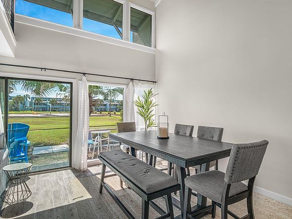 Newly renovated, this sought-after two-story townhome/condo at Sunnyside Beach & Tennis Resort is close to the entrance and private beach access for the community. Beautifully presented and surprisingly spacious, this immaculate condo home welcomes you with a relaxing covered porch and patio for grilling out. The inviting entrance of the kitchen opens into a light and spacious living area with a soaring double-height ceiling and galleried mezzanine. Sliding doors off the dining area lead out to the private patio with amenity views of the beach volleyball and tennis courts. Taken back to the studs in 2021, the home has been completely remodeled including all new exterior siding. Inside it boasts new luxury vinyl tile flooring, sliding glass doors, fresh paint, new HVAC, kitchen, bathrooms and furnishings. The gulf-inspired blue and white kitchen is a must-see. Full-height white wall cabinets are complemented by a glossy blue glass backsplash. Cambria quartz countertops continue around to the breakfast bar which has seating for four. Stainless steel Whirlpool and Samsung appliances, and a central island provide ample storage along with the hidden pantry behind a blue barn door. The hallway provides a half bath with more shelving, storage closet, and a laundry room. Two bedrooms and two newly renovated bathrooms with stone-topped vanities are located on the upper mezzanine level along with a second sitting area or bonus room loft. The primary ensuite bedroom is generous in size with room for a king bed plus furnishings. And the guest bedroom across the hall has ample space to sleep four in a queen-sized bed and bunk beds. Dual-level windows enhance this practical, well-planned open space. With a low HOA, the resort is a vacation paradise for rental income or second-home living. It has plenty of green space surrounding the communal lagoon pool and spa. Relax on lounge chairs or head to the tennis and volleyball courts for a more energetic workout. Kids will love to play on the playground and the nearby private beach has easy owner access via an underground tunnel. And as an added perk, if the new owner has a boat or RV, it can be stored in the back of the community for an additional $100/month. Although this home has never been rented, the community offers an in-house turnkey rental program. Sunnyside Resort is located on the west side of Front Beach Road and just a short drive over to Inlet and Rosemary Beaches and the shops and restaurants on 30A.