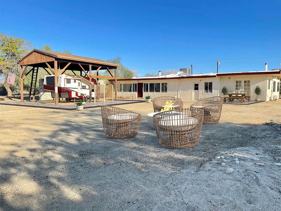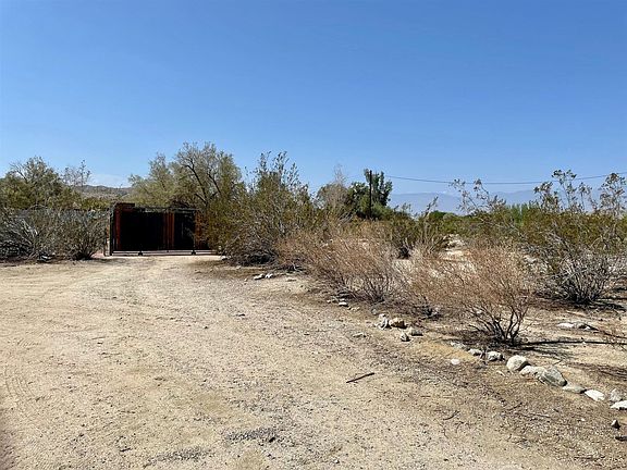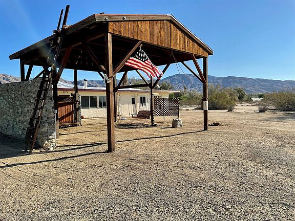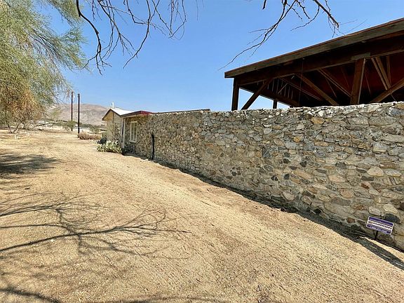 Opportunity Awaits! Rustic Charm in Beautiful Sky Valley. This Wonderful Country Lifestyle Can Be Yours. Framed by a Vintage Rock Wall, this 1920's Home has the Feel of a Simpler Era with 2 Wood Burning Stoves, Large Timber Framed Carport, Relaxing Sun Filled Living/Dining Area, and Beautiful Unobstructed Mountain Views in the Distance. Situated on 2.5 Fenced Acres, this Country Ranch Home Offers Wide Open Spaces, Privacy from Neighbors, Peace & Quiet, and Incredible Desert Sunsets. Just 20 minutes from Palm Springs. Features include an Open Living/Dining Area, with Eat in Bar Area in the Kitchen, Roomy Main Bedroom with Ensuite Bath, and another 2nd Bedroom/ Bath on the West Side. The East Side of the Home Features an Open Beam Ceiling Studio Space with 3rd Bedroom/ Bath, Clerestory Windows, 2 Wall Mounted Ductless Air Conditioners, plus a Kitchenette. A Private Entrance Guest Suite is Perfect for Visitors. Detached Two Car Garage, Storage, Laundry Hookups, and Potential Extra Room with Bath at the Rear. Leased Solar. Motorized Gate with Clicker for Easy Access on South Side and Manual Gate on West Side. Virtual Staging. Get Ready to Enjoy. Don't Let this Rustic Get-Away Pass You By.