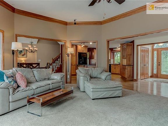 - INTERIOR FEATURES: Pantry, Sump Pump, Partial Carpeting, Kitchen Island, Prt Window Cover, Custom Cabinets