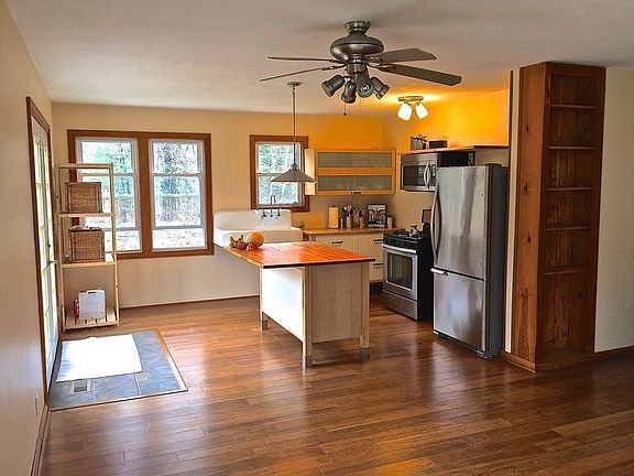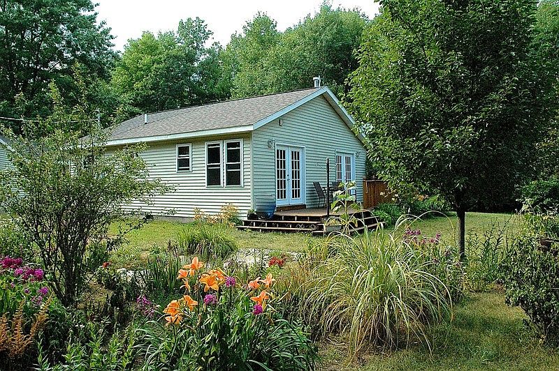 Beautifully remodeled interior includes new paint on ceiling/walls and bamboo hardwood floor throughout with (2) French door tiled entryways. Living/kitchen open floorplan has many large windows allowing for abundant natural light. Kitchen remodel includes all new cabinets and stainless appliances, farm style sink, all-new lighting. Other recent upgrades include High efficiency furnace and asphalt driveway. Add a woodburing stove with the chimney already in place. Wooded 2 acres offers privacy and wildlife will walk through your yard. Enjoy the view from your deck that includes a large flower garden bursting with color that blooms Spring to Fall. Master BR includes 2-door closet for his/her access. New Maytag HE washer and dryer included. Huge 25x25 Pole barn style 2.5 Car garage with room for workshop. Also included in price are Haeur portable room airconditioner, gas snowblower, generator Additional property info: http://www.forsalebyowner.com/listing/2-bed-Single-Family-home-for-sale-by-owner-22401-Cutler-Road-49329/24028296?provider_id=28079