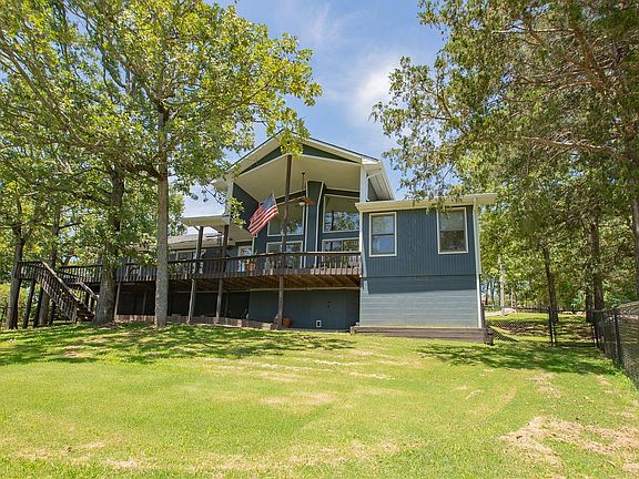 Introducing a stunning lakefront property with a picturesque lake view, this 4-bedroom, 2 1/2-bathroom home is a haven of comfort and style. The living area boasts a wall of windows and sliding glass doors leading to a spacious back deck, while a large patio underneath provides a perfect spot for outdoor relaxation. The dining room features an eat-in bar flowing into the kitchen, where you'll find solid surface countertops and a matching island with extra storage. The home also offers a huge walk-in storage area underneath. The AVAILABLE 10x28 boat slip is conveniently located just a few hundred feet from the back door. This is a rare opportunity to experience lakeside living at its finest.