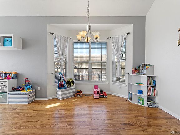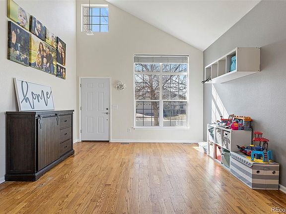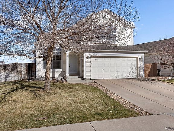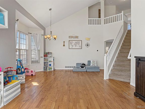 Welcome home! This beautiful 4 bedroom home is situated on a large corner lot in Saddle Rock Ridge. With large windows, vaulted ceilings and an open floor plan this home is left feeling light and bright. Enjoy your lovely white kitchen, granite counters and all stainless appliances while entertaining. Hardwood floors through the main level, all bedrooms located on the 2nd floor and an unfinished basement for room to grow! This home has easy access to E-470, shops and restaurants.