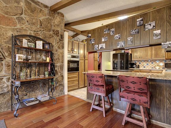 Single Family Home for sale by owner in Golden, CO 80401. Unique mountain property with great views, privacy, and quiet. Situated on over 4 acres on a sloped hillside, the house sits at the end of a 600 ft. driveway,and has several decks (including off each bedroom). The living, dining and kitchen areas are surrounded by large windows. There is also a large paved patio in front of house. Major renovations in the last few years include kitchen granite countertops, Jennaire appliances, and Brazilian carved cherry floors in living and dining areas. A total remodel of main bath includes ceramic tile shower, walls, floor, shower, jetted tub, and copper topped vanity and sink. The master bath, downstairs bath, and laundry room were also remodeled, with lots of ceramic tile and granite. Other unusual features include: open floor plan, solar heating and hot water (new system in 2010), two rock fireplaces, 20 minute commute to downtown Denver via I-70 or 6th Ave.,large ground floor office, wet bar in basement (80