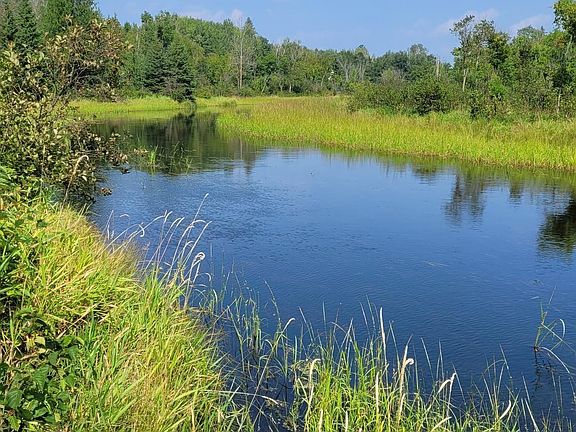 Barclay Twp.-This 20 acre parcel features over 1/4 mile of navigable river front and a solid 4BR/2BA walkout. The home sports log siding, a large wrap around deck, updated kitchen and wood/off-peak electric heat. There is a 1,344 SF newer metal building with concrete/electric. A 16'x24' shed is insulated along with a small open sided building for boat storage. For you avid duck hunters, there is a "Quack Shack" on the river's edge with a dock for easy boat launching. The grounds feature massive Norway pines and excellent deer hunting potential on the balance of the acreage.