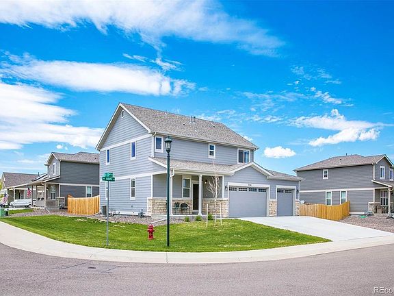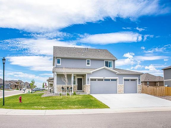 Wow! This one feels brand new! Barely lived in! Open floor plan with great natural light throughout! Entryway and kitchen feature a beautiful porcelain tile floor that looks like wood. Huge living room that opens up into a gorgeous kitchen. Kitchen has plenty of storage space with 48-inch cabinets as well as a large pantry. Gorgeous granite countertops and stainless steel appliances make this kitchen pop! Upstairs you will find a nice size master bedroom with a walk-in closet and a 5 piece master bath, again with beautiful granite countertops. The secondary bathroom has two sinks and granite as well. The unfinished basement ceiling is 9 feet high, drywalled, and waiting for the new owner's design. Unbelievable 4 car garage space! The 3rd bay is tandem parking or could be made into a great workspace. The home is located on a great corner lot with over 10,000 sq feet and professionally landscaped. Plenty of room for a playset or garden! The newer neighborhood features a lovely park and playground. Come and live the good life in the quiet town of Strasburg! 30 minutes to DIA, 45 minutes to downtown Denver