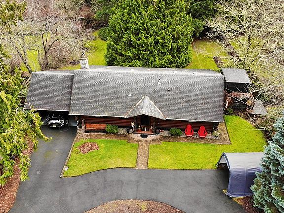 Discover the charm of this rustic log home in South Mill Bay,nestled on a tranquil half-acre lot at the end of a quiet no-thru road—just 17 minutes from Langford.This inviting 3 bedroom rancher features the warmth of wood throughout and a full walkout lower level.The living and dining area exudes cozy ambience with a wood-burning fireplace and new French doors opening to a spacious deck overlooking a fenced backyard.Recent upgrades include a new kitchen with heated floors,a new ensuite and refreshed 2nd bathroom,new vinyl windows and doors,a heat pump,pellet stove,and improvements to both the septic and well.Downstairs offers a family room,third bedroom,bathroom,and a large unfinished space perfect for a workshop,or more living space?Outside,enjoy the expansive yard and a charming log outbuilding with windows and a concrete floor—ideal for an artist’s studio.The home also features a high-producing well,attached carport, and a circular driveway for easy access and parking.
