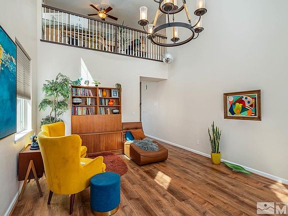 Views, Views and more Views!! Breathtaking and expansive panoramic views of the city, mountains, valley, and the Damonte Ranch wetlands. Situated on an enormous .29-acre lot! The backyard landscaping provides a park-like setting with a variety of seating areas surrounded by an abundance of rose bushes. The grape vines and Wisteria drape over the trellis walkway. This 3 bed 2.5 bath home has a spacious loft area and the Primary suite features a balcony deck. Newer Salt water hot tub is included!, Exterior features include low-maintenance front yard landscaping complemented by a covered front porch. Additional interior details include laminate wood flooring in the formal rooms, crown molding in one of the secondary bedrooms, designer light fixtures and hardware. The primary bath area offers a shower stall, large garden tub, and walk-in closet. Newer Cellular blinds were installed through out.