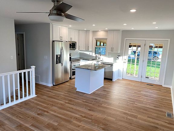 This beautiful family home is located in the thriving town of Ashland, Nebraska. Situated between Omaha and Lincoln, Ashland offers small-town living with a vast number of activities nearby including wineries, trails, Mahoney State Park, SAC Museum, Safari Park, and more. Newly remodeled, this home offers open-concept space for entertaining. Updates include brand new, stainless LG kitchen appliances and gorgeous granite counters with an island. The kitchen also features new, crisp white cabinetry made with solid-wood and soft-close drawers and doors. Updated LED lighting throughout living room, kitchen, and finished basement. The upstairs bathroom is also updated with a tile bath/shower and granite top vanity. Along with a single-stall attached garage, there is an extra large, detached three-stall garage, perfect for a car enthusiast, workshop space, or ultimate man-cave. The large driveway also makes a great basketball court. Entertain your family and friends on the covered patio. Come see everything this home has to offer.