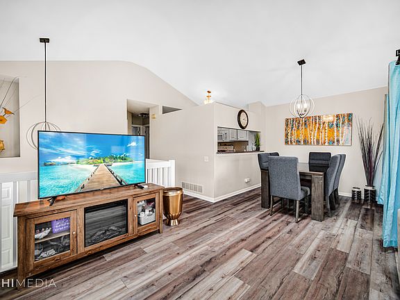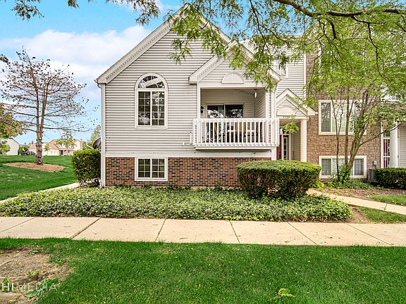 Fabulous end unit in popular Dawson Mill overlooking a park like setting. This unit is so light and bright with so many windows. Open floor plan with vaulted LR w/skylites. Beautiful updated, white kitchen cabinets with quartz counter tops. Balcony slider from dining area with beautiful views of trees & walking path. Primary bedroom offers full bath with updated vanity & walk in closet. Relax & get cozy in the lower level English basement family room with fireplace. Newer LVT plank flooring through out. All updated, custom lighting & ceiling fans through out. Balcony has just been restained/repainted & over looks the green space. Large insulated & drywalled, 2 car garage w/storage. Minutes to Randall Rd with shopping & restaurants, Longmeadow bridge, I-90 or downtown Algonquin. Don't wait! See this move in ready home today!
