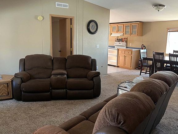 Well-kept manufactured home in Villa West Mobile Estates with 1400 square feet of living space, large kitchen and dining area, separate laundry area, 3 full bedrooms, 2 bathrooms, and office/den. This is a great floorplan with the primary bedroom/bath on one end and additional bedrooms on opposite end. In the past three to four years, both inside and outside have been painted, new carpets were installed, and new furnace and A/C.