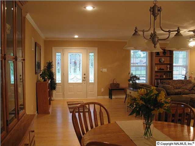 Come home to a great Open floor plan featuring a 24x17 Living Room with a very nice laminate flooring and entertainment system. There is a beautiful gas log fire place and built-in speaker system. Great storage with the abundance of custom maple cabinetry and desk in this well-planned kitchen. Nice covered front porch to rest and relax, metal roof and vinyl soffits for maintenance free living.