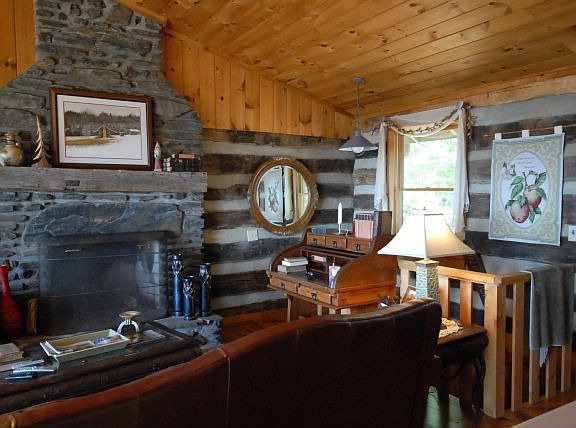 Stonebridge Log Cabin offering one level living with 2-bedrooms, 2-baths, covered front porch, Screened back porch, open deck, full walk-out lower level with expansion potential and finished space including bedroom and full bath not counted in living space. Beautiful all natural wooded setting with magnificent layered long range views.