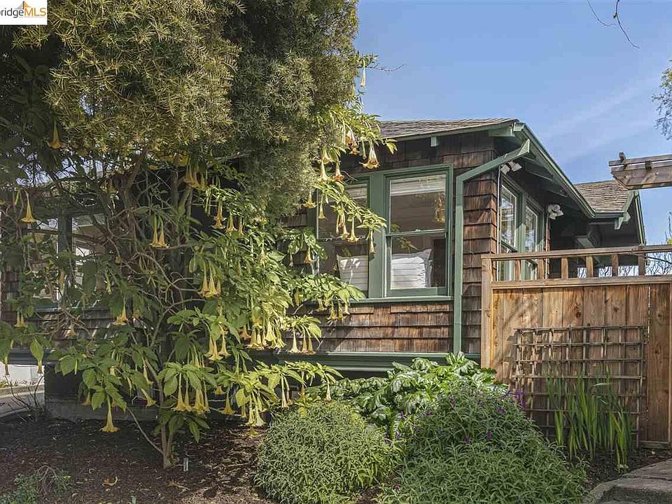 Nearby to downtown Berkeley yet feeling removed from urban life, this cozy brown shingle cottage harkens back to bygone era. Through a side gate, the cottage door opens to a wide deck stretching out to the yard. There's a sense of calm in opening the front door not to the street but to a deck and garden. The level garden is calling out for a green thumb to create the sanctuary it yearns to be! Wood floors warm the open kitchen and living room. A modern kitchen is at the heart of this home. The vaulted living room ceiling brings a sense of spaciousness. The 2 corner bedrooms are tidy and efficient. The laundry room doubles as a mudroom and a separate concrete patio provides additional outdoor space for entertaining. Sitting on the edge of Central Berkeley and Poet's Corner, the cottage is approx. 0.6 miles from both N Berkeley and Dwntwn Berkeley BART. Walk Score® of 83, Bike Score(tm) of 97 and just 6-blocks from Civic Center farmers' market makes living without a car a real possibility.